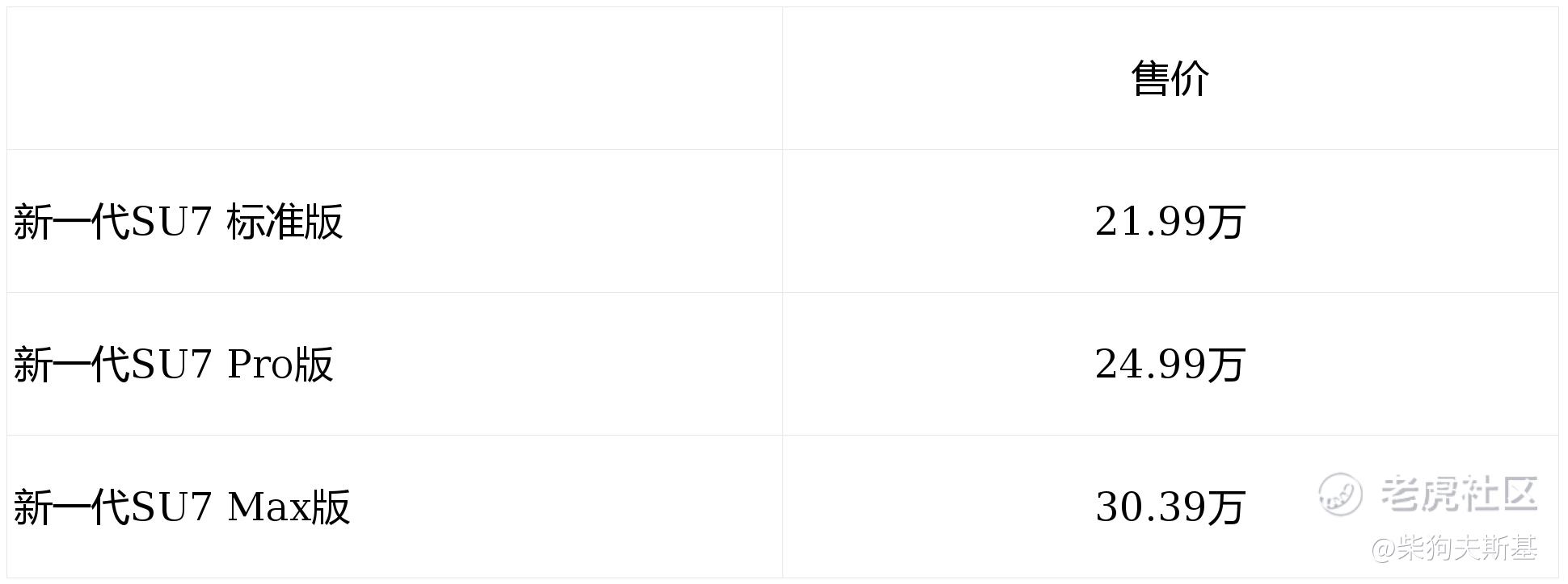 新一代SU7发布标准版、Pro版、Max版三个配置,售价21.99万~30.39万