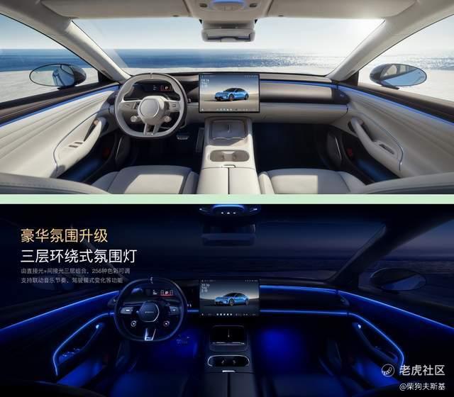 除此之外,内饰细节设计也迎来更多优化,中控台改为对称式布局,优化主副驾操作便利性;高频接触面实现100%软质材料包裹;方向盘采用Nappa真皮包裹,配合镀铬装饰件,强化高级感;珠宝质感的高亮电铸按键,提升操作触感与视觉精致度;门板与座椅引入豪车级绗缝工艺,搭配金属铭牌与扬声器金属网罩,实现细节层面的精致表达;环抱式氛围灯实现同级最长,长度达3636mm,从中控台延伸至后排。氛围灯采用三层环绕结构,由直接光与间接光组合构成:直接光用于勾勒座舱轮廓,间接光营造沉浸式氛围。支持上下拼色设置,可联动音乐节奏与驾驶模式变化,并具备开门预警功能,兼具情绪价值与实用功能。灯光律动与门板放射状绗缝设计形成视觉呼应,显著提升座舱豪华感与精致感。