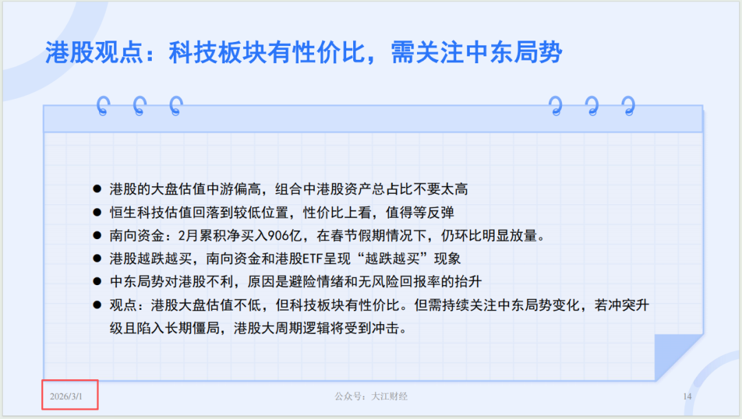 3月1日《拐点周报》港股观点:科技板块有性价比,若冲突升级,港股大周期逻辑将受到冲击。
