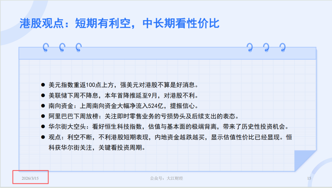 3月15日《拐点周报》港股观点:利空不断,不利港股短期表现。
