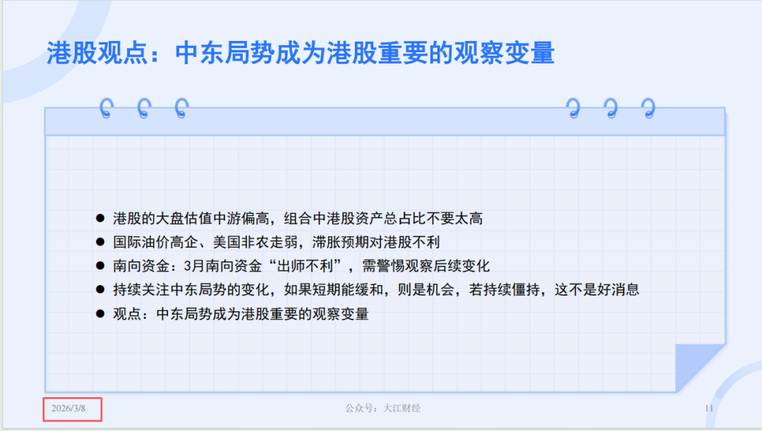 3月8日《拐点周报》港股观点:中东局势若短期缓和,则是机会,若持续僵持,这不是好消息。