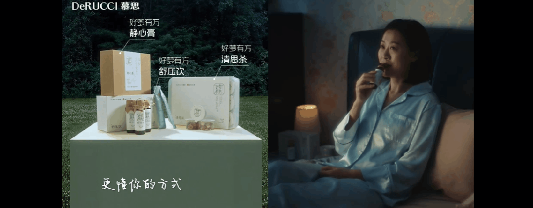 这样既减少了身体的负担,满足都市高压人群温和养生的需求,让睡前食养成为一种轻松、便捷的睡眠仪式;又能从内部调理身体状态、提升用户长期睡眠质量,诠释了“安睡先养身”的东方睡眠智慧。