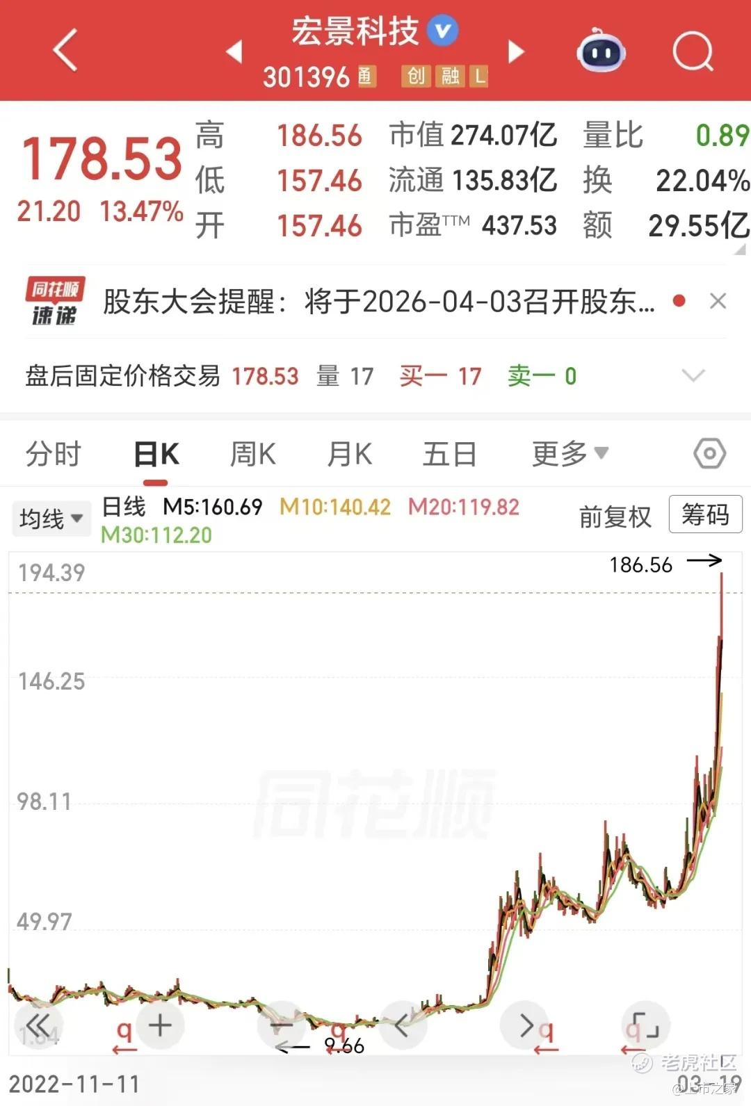 随着算力概念持续升温,资本市场相关个股表现活跃。3月19日,宏景科技(301396)股价再度迎来大幅拉升,盘中一度大涨18.58%,最高触及186.56元/股,刷新上市以来历史新高。