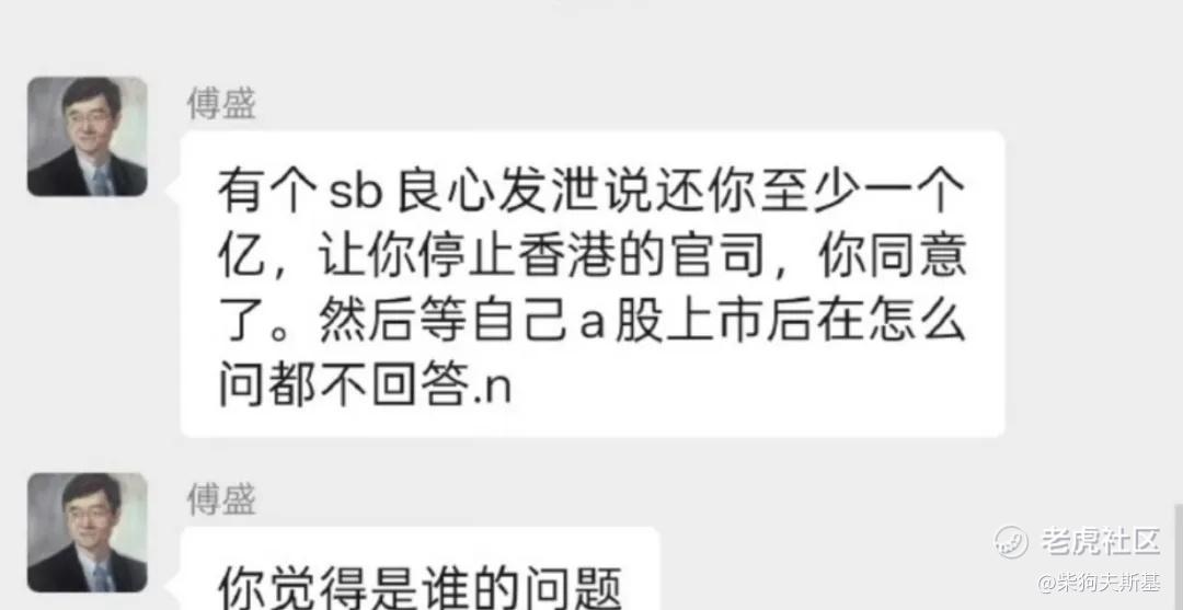 另一张截图中,傅盛还表示,有个sac中间良心发现说还你至少一个亿,让你停止香港的官司,你同意了。然后等自己a股上市后在怎么问都不回答。「你觉得是谁的问题」