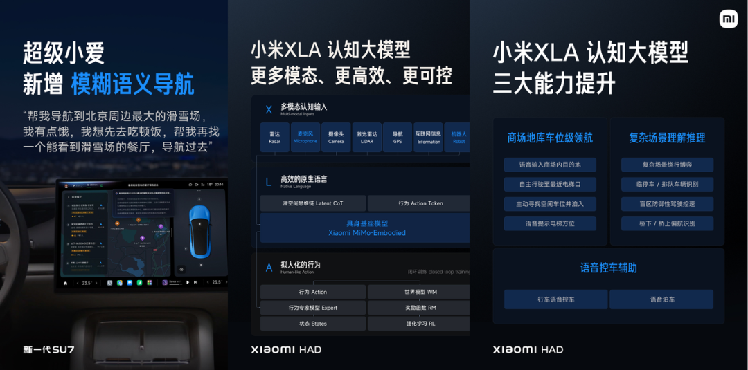 语音控车辅助,涵盖行车语音控车与语音泊车功能,这些能力将为小米 HAD 带来更智能、便捷的出行体验。