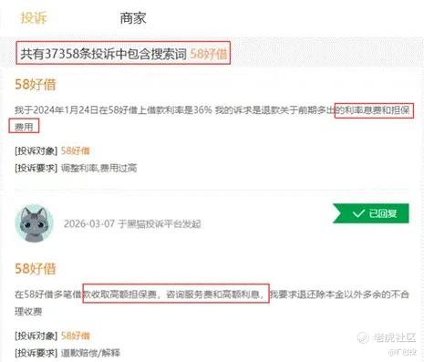 2021年央行强制要求所有贷款产品明示年化利率后,58好借初期宣传的年利率为“7.2%起”,但实际合同利率经常达20%以上,叠加担保费、咨询服务费、会员费等,导致综合年化成本逼近甚至突破36%。这时候该平台就已经引发大量用户投诉“虚假宣传”。