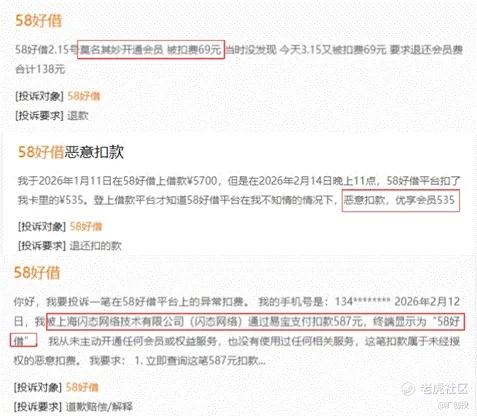 类似多收利息的投诉更是有很多。截至目前,在黑猫投诉平台上,有关“58好借”的投诉已经超过37000条。投诉内容多集中在该平台“高额服务费”、“莫名扣费”、“收取会员费”、“恶意扣款”等。
