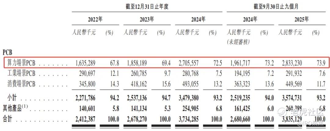按应用场景划分,公司的大部分收入来自算力场景PCB,于2025年前三季度约占当期收入的73.9%。