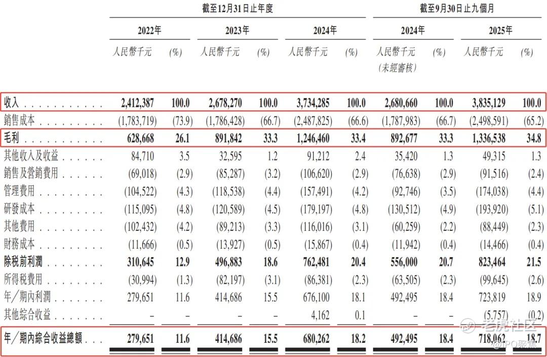 公司的净利润也在一路高歌,从2022年至2024年,分别为2.8亿元、4.1亿元及6.8亿元,复合年增长率为56.0%,对应的净利率分别为11.6%、15.5%及18.2%。2025年前三季度的净利润更是达到7.2亿元,同比增长45.8%,对应的净利率为18.7%。