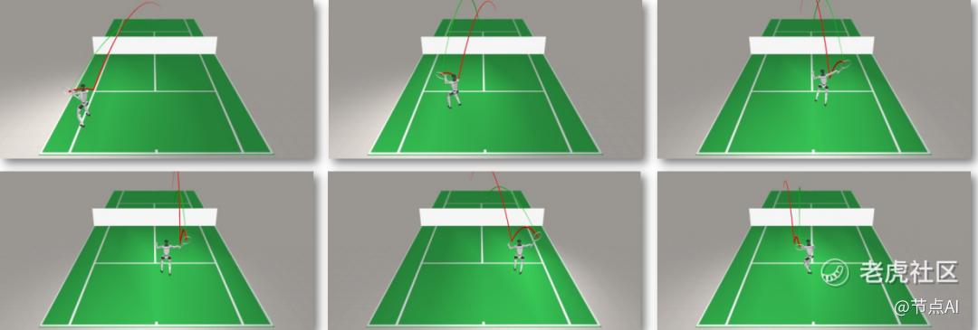 一般来说,真实网球运动中,球速往往在 15-30 m/s 之间,球场空间宽阔,球与球拍的接触时间仅仅只有极短的几毫秒。人们很难采到完整、精确的人体网球动作数据。真实场景中,往往球从四面八方来,也让预设程序的方式无法实现。