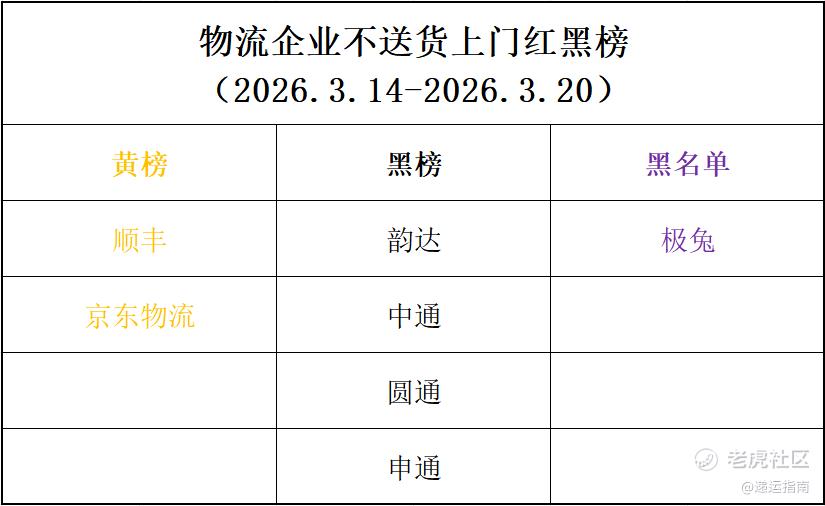 本周,我们以“是否送货上门”为标准,推出快递企业“送货上门”服务的红黑榜。
