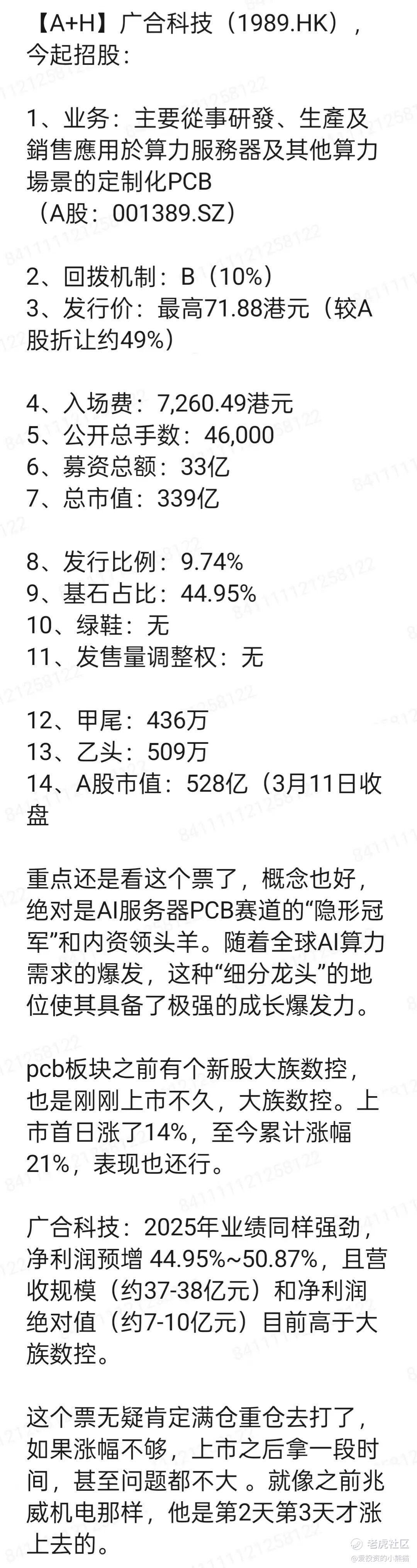 之前在xq里也说了重点还是看这个票了,概念也好,绝对是AI服务器PCB赛道的"隐形冠军"和内资领头羊。随着全球AI算力需求的爆发,这种“细分龙头”的地位使其具备了极强的成长爆发力。