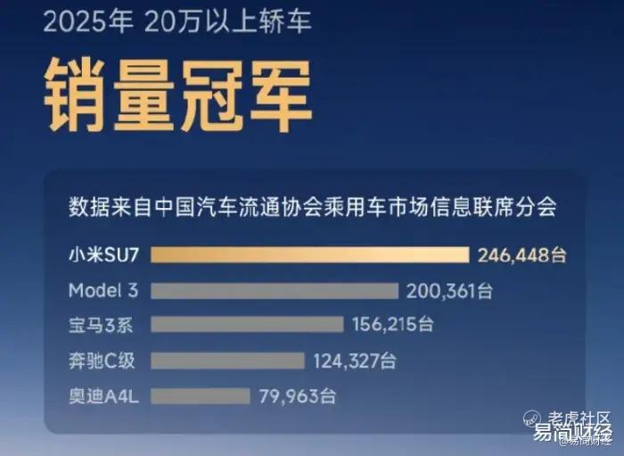 看看过去小米SU7的数据,发布24小时大定88898台,2年累计交付38.1万台,还是2025年20万以上轿车销量冠军,含金量毋庸置疑。