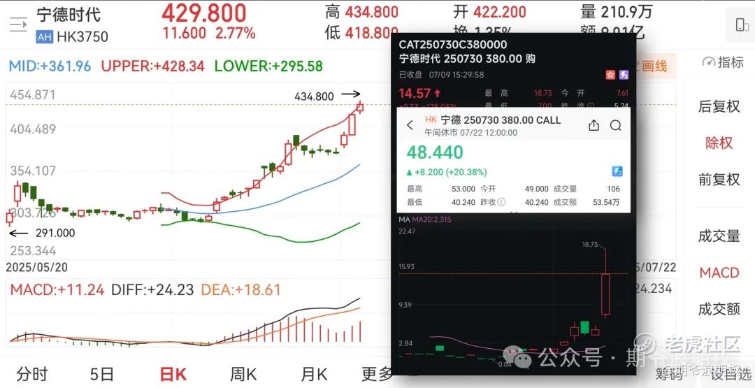 家人们,还记得去年7月,宁德时代(港股)看涨期权的千倍行情吗?2507的380购一个月翻了1000多倍。