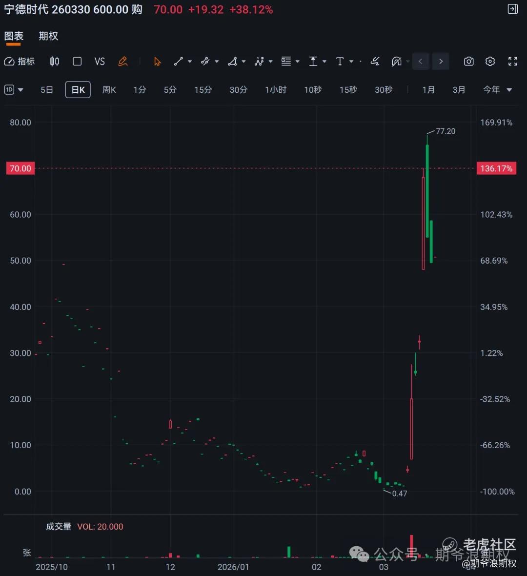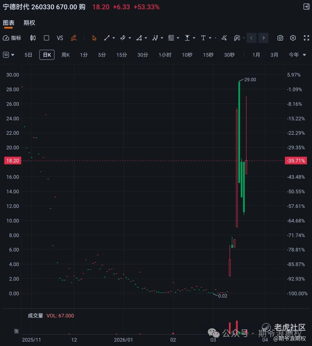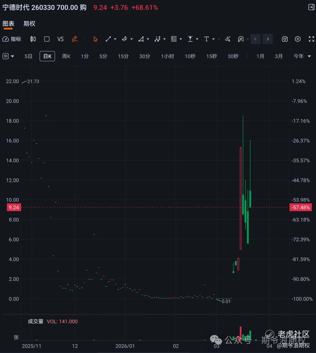 时隔半年,千倍行情又双叒叕在宁德港股复现了!在连续下跌了五个之后,宁德迎来了绝地反击,尤其是港股,9个交易日暴涨了近45%,好几个2603的看涨期权都翻了1000多倍。
