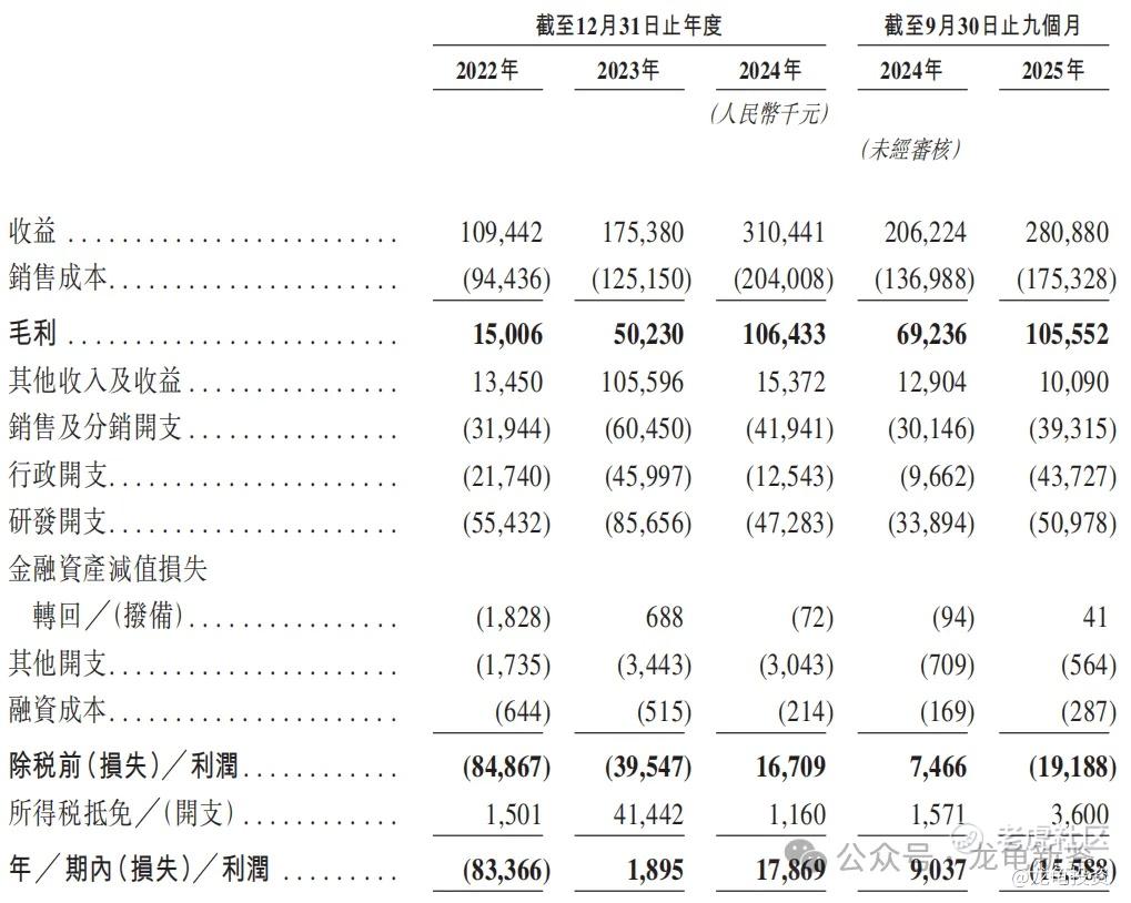 22年毛利1500.6万,23年毛利5023万,24年毛利1.06亿,25年Q3毛利1.06亿,较上年同期0.69亿,同比增加53.60%;