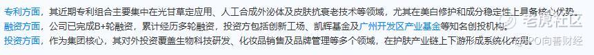 而且,巧合的是,外泌体也正是谷雨的核心技术之一,天眼查APP显示,谷雨在外泌体及皮肤抗衰老等领域,具备核心优势。