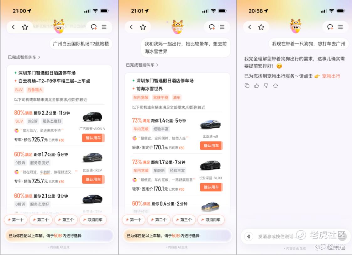 一个典型案例是“宠物出行”,这是滴滴在2024年11月正式推出的服务,截至目前已有近200万只宠物完成档案注册。为什么做这个?因为关注到养宠人士携宠出行有多难——被拒载是家常便饭。滴滴通过自愿抢单模式让司机自主选择是否接宠物订单,同时优化播单卡片、标清宠物信息,让司机提前准备。这种对细分场景的深耕,不是靠AI模型推理出来的,而是靠对用户真实出行场景的长期细微觉察。