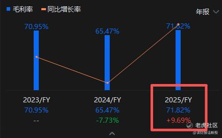 公司的毛利率从2023年的71.0%、2024年的65.5%,大幅提升至2025年前三季度的71.85%。
