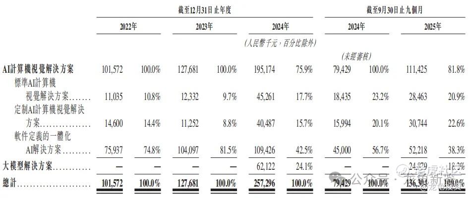 主要营收来源于AI计算机视觉解决方案、大模型解决方案,其中大模型解决方案24年下半年才开始产生营收,仅仅三个月产出6212.2万营收,占比24.1%,25年前三个季度却只产出2487.9,占比18.2%;没有在24年的基础上爆量,想想也是,如果爆量出来就不是这个宣传口径了,具体营收明细见下图。