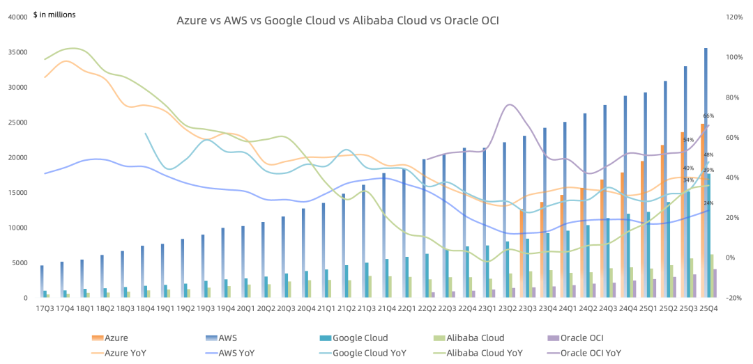 《全球云计算巨头25Q2:AI助力Azure/GCP/OCI/阿里云加速增长,AWS表现一般》