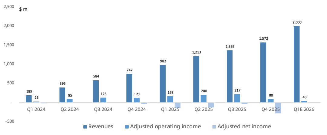 预计下季度营收19-20亿美元,同比增长94%-104%,调整后经营利润在0-4000万美元,Q1将是利润谷底;预计2026年capex为300-350亿美元;2026全年营收120-130亿美元,按中值计算同比增长约140%,预计调整后经营利润9-11亿美元,2026年末ARR营收将达到170-190亿美元,2027年末ARR营收将超300亿美元,管理层仍有信心在长期实现25%–30%的利润率目标。