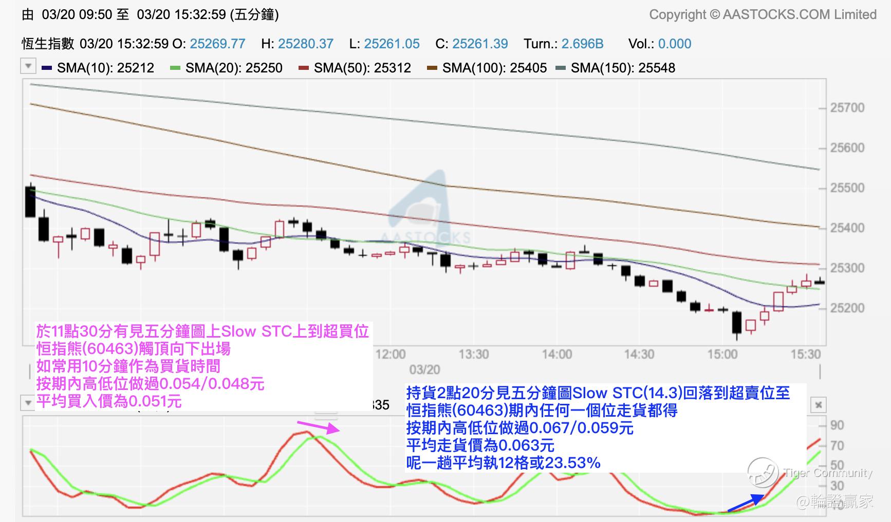 上个星期五拣咗只恒指熊出嚟,都谂住只系用返五分钟图Slow STC(14.3)做触顶向下Swing Trade一起可以,同时亦留意注码。呢注都唔驶过weekend,3点半左右见Slow STC(14.3)触底上行都走得。