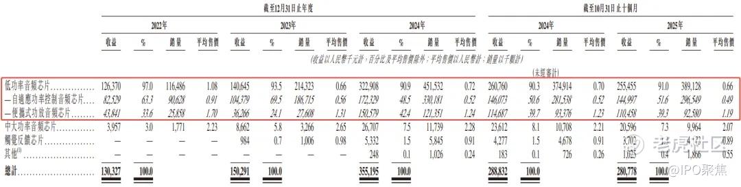 按产品类型划分,公司的绝大部分收入来自低功率音频芯片,于2025年前十个月约占当期总收入的91.0%。