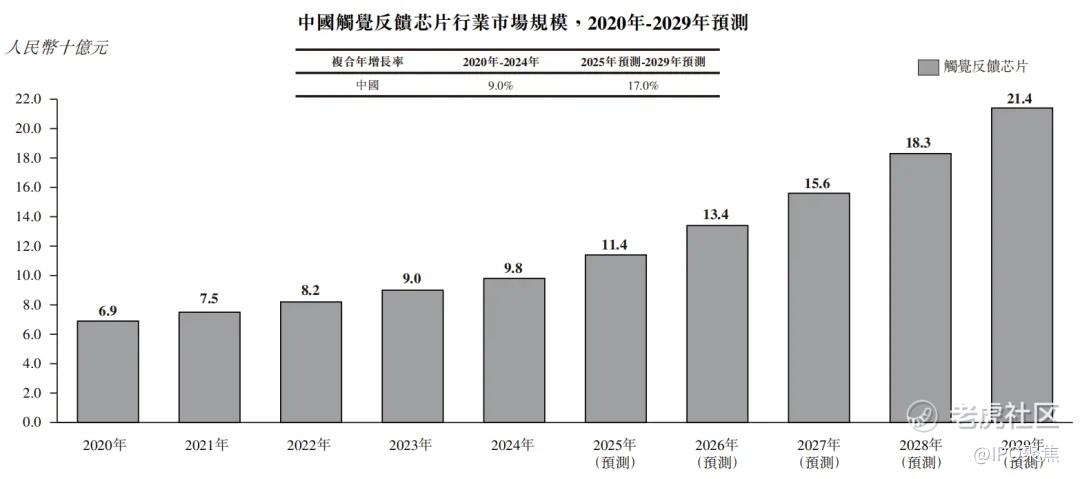 同时,中国触觉反馈芯片的市场规模也在稳步提升,按总营收计算,从2020年的69亿元增至2024年的98亿元,复合年增长率为9.0%,后续预计将以17.0%的速度增至2029年的214亿元。