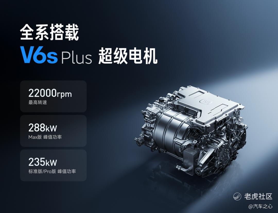 同时全系标配 V6s Plus 超级电机,最高转速提升到每分钟 22000 转,单个电机的峰值功率高达 392 匹。