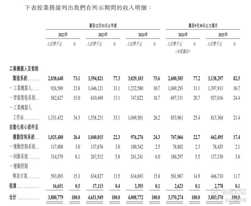 同期,自动化核心部件及运动控制系统实现销售收入分别为10.26亿元、10.4亿元、9.76亿元、6.63亿元,占各期营业收入的比例分别为26.4%、22.3%、24.3%、17.4%。