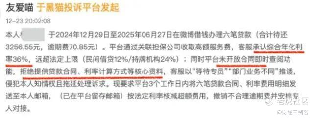 微博借钱宣传时声称综合年化成本(单利)7.2%起,然而实际借款中,不少用户发现自己的贷款综合年化利率高达36%。这一利率远超行业合规线,甚至超过了2025年监管新规要求的最高不得超过24%的年化红线。用户们在还款时才发现自己陷入了高利贷的陷阱,苦不堪言。