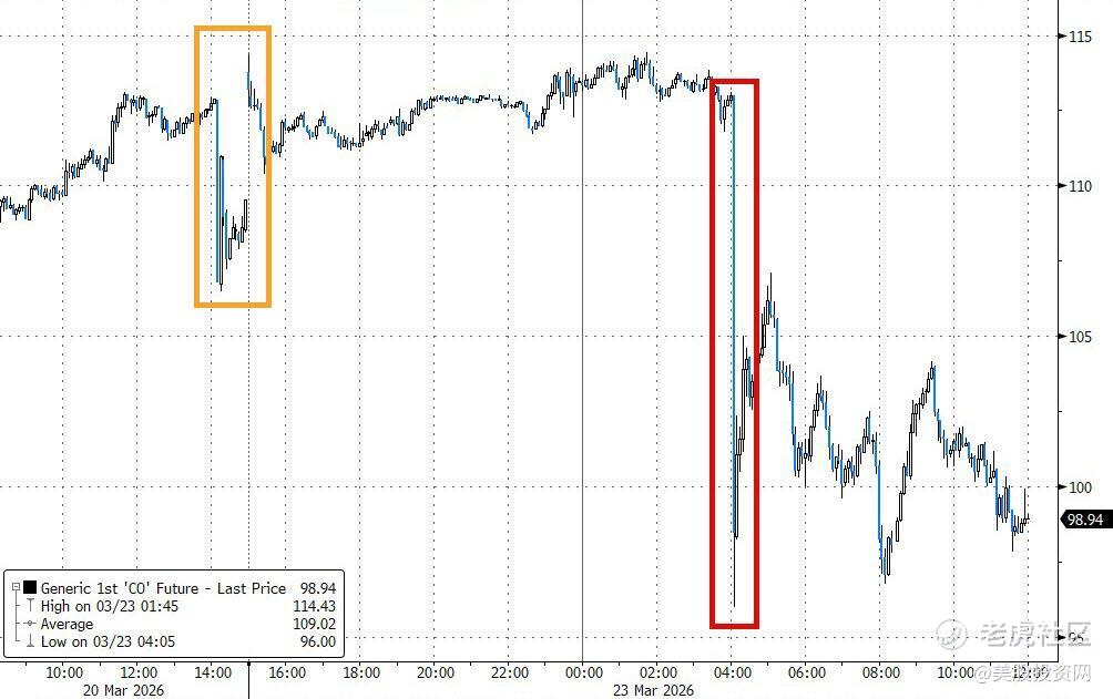 消息一出,短短五分钟内,原本指向大跌的道指期货瞬间拉升1400点。布伦特原油跌破100美元大关,单日最大跌幅一度超过14%。