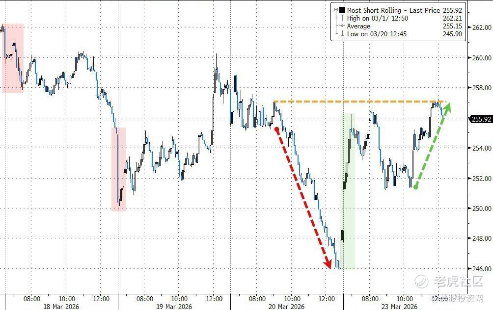 周一的市场走势,基本就是这个逻辑的又一次重演。先是上周末“48小时最后通牒”把避险情绪推上去,接着又在周一盘前抛出“五天暂停”,把市场硬生生拉回来。