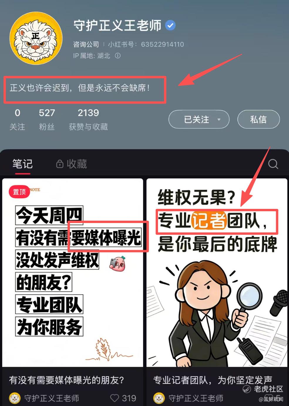 值得注意的是,此类公司并非个例。记者在社交媒体以“维权”“曝光”为关键词搜索发现,大量账号打着“为民发声”“守护正义”的旗号,先将用户引流至私域,再以相同套路收取高额费用。
