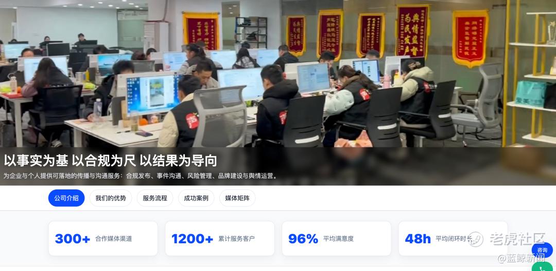 记者了解到,该公司并非媒体,而是一家位于湖北武汉的传媒公司,公司官网显示,合作媒体渠道超过300+,服务客户1200+,是一家致力于社会公益传播与公民权益发声的专业文化传媒机构。