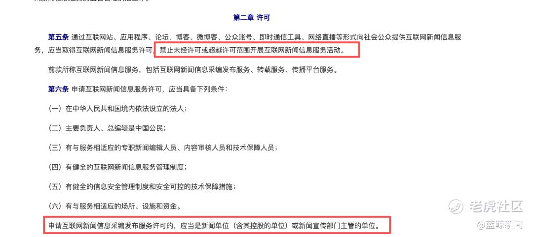 《互联网新闻信息服务管理规定》明确规定,通过互联网站、应用程序、论坛、博客、微博客、公众账号、即时通信工具、网络直播等形式向社会公众提供互联网新闻信息服务,应当取得互联网新闻信息服务许可,禁止未经许可或超越许可范围开展互联网新闻信息服务活动。