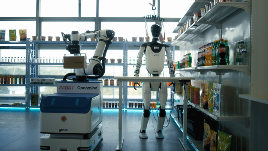 比如,在商超实景演示中,当总指挥部发出指令,Openmind OS立即进入毫秒级调度:它一边调度复合机器人平稳驶向冷链区,规划最优路径并实时避让行人;一边协调人形机器人的双臂准备接替后续的开箱和上架动作。