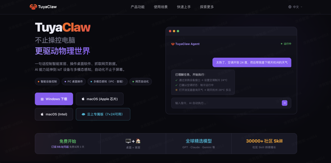 复制链接,立即拥有你的全能AI助理:claw.tuya.ai
