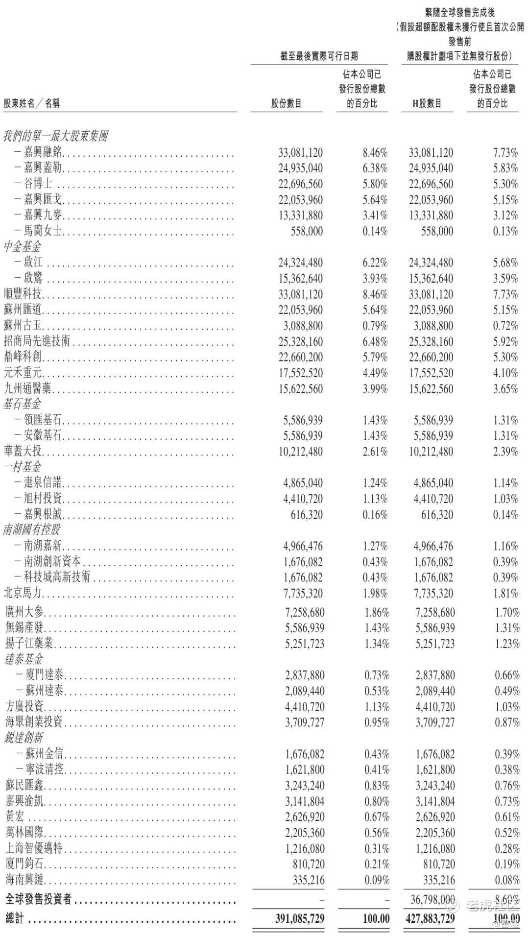 其中,谷春光博士持股为5.8%,嘉兴融铭持股为8.46%,嘉兴盖勒持股为6.38%,嘉兴汇戈持股为5.64%,嘉兴九麦持股为3.41%,马兰女士持股为0.14%,招商局先进技术持股为6.48%,九州通医药持股为3.99%。