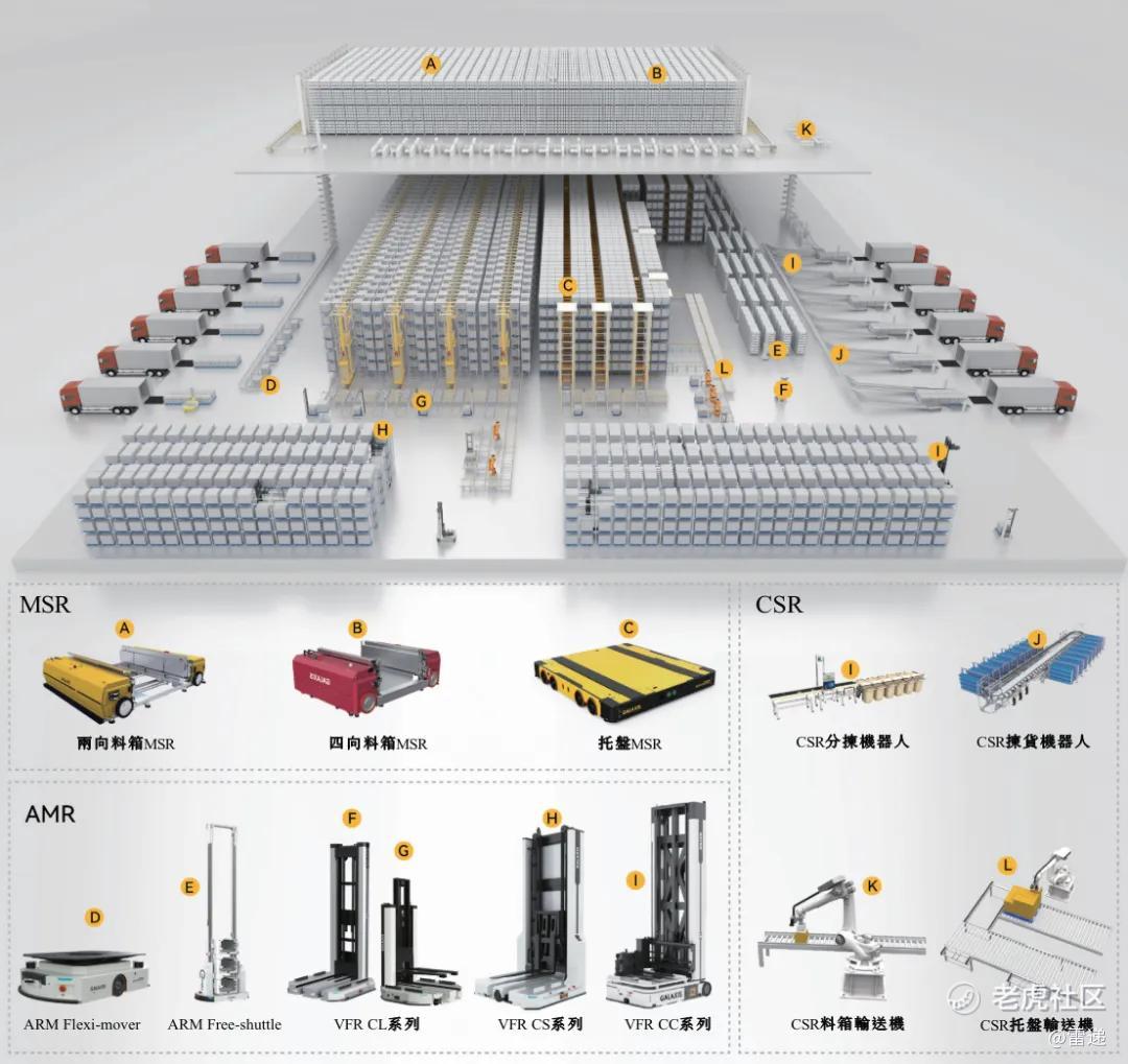 凯乐士围绕三大核心产品线——多向穿梭车机器人(MSR)、自主移动机器人(AMR)以及输送分拣机器人(CSR),提供覆盖存取、分拣及搬运等场内物流核心功能的全系列机器人产品组合。