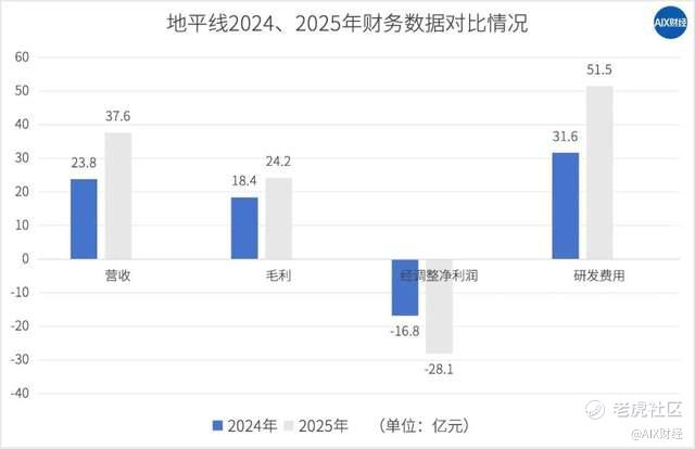 地平线的财报有一组对比强烈的数据:全年收入37.6亿元,同比增长57.7%;但年内亏损104.7亿元,即便剔出账面因素,调整后净亏损也达28.1亿元,同比扩大67.3%。