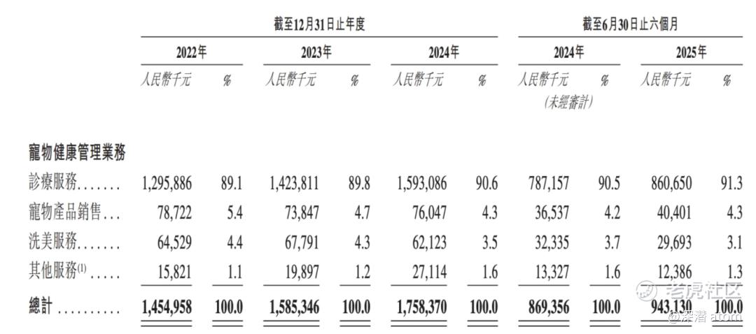 值得注意的是,通过转诊机制实现资源分层配置,2022-2024年,瑞派宠物宠主数量从121.61万人增长至143.03万人,就诊总次数从366.23万次增至429.60万次,规模化效应初步显现。招股书时间内,瑞派宠物的诊疗服务分别贡献了89.1%、89.8%、90.6%和91.3%的营收。虽然诊疗服务为高毛利做出了贡献,但也为其口碑的下滑埋下了隐患。