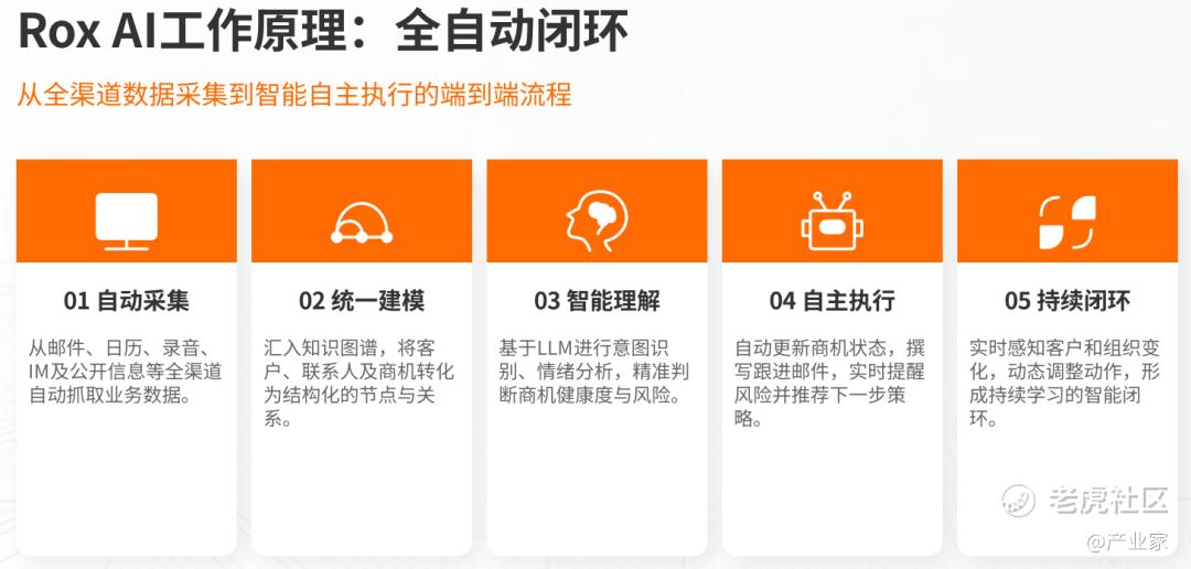 再比如全球AI新秀Palantir,其更是已经完全跑通了数据模型和对应场景的效果定价单元,真正基于效果,而非token消耗进行市场定价;以及如今被海外追捧的Rox AI,如今它正在颠覆固有的CRM界面,完全通过Agent驱动的形式,帮助客户实现确定性的效果,摆脱了固有CRM被抗拒使用的结局,真正实现营收加持。