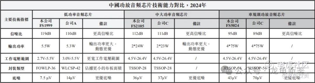 根据招股书给出的线索,在已商业化的主流产品中竞品公司主要就两家:艾为电子与德州仪器。低功率音频芯片主要对手是艾为电子;中大功率音频芯片则与德州仪器对标;在车规级功放音频芯片同样与德州仪器对标。详细数据看下图: