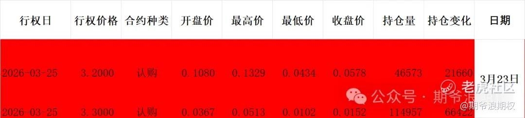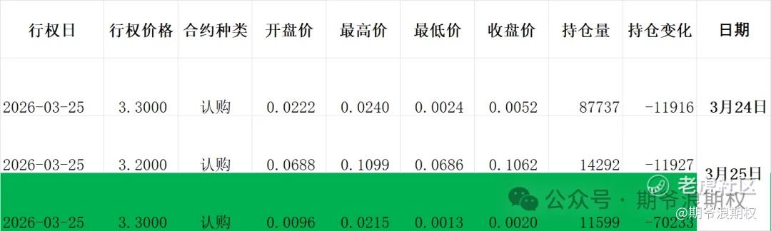 3月24-25日,也就是大A所有ETF期权3月期权的最后两天,创业板ETF3月3200购和3300购纷纷减仓。