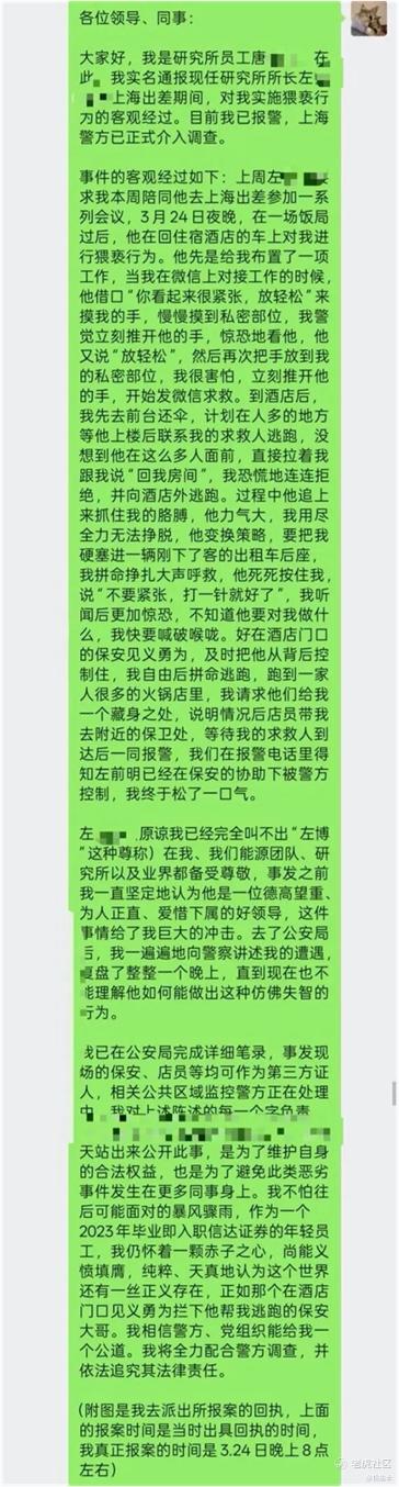 2026年3月25日,一份长达数千字的实名举报信在金融圈迅速发酵,将信达证券推至舆论风口。举报人唐婵玉是信达证券研究所2023年入职的研究员,实名指控其直属领导、研究所所长兼能源首席分析师左前明在上海出差期间对其实施猥亵行为。