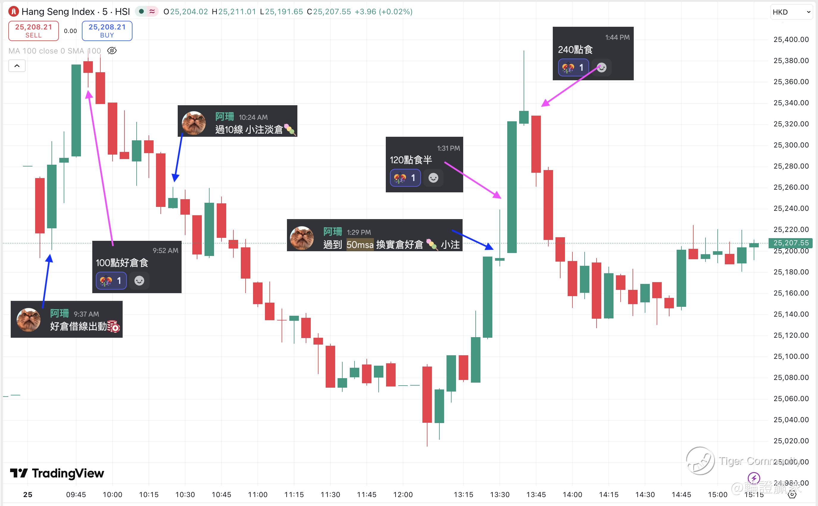 唔紧要,市日日都开嘅,甚至乎喺之后嘅下半场有见五分钟图Slow STC(14.3)出触底上行而出动,刚好上多一次上半场嘅高25309点/小时图50线后见返五分钟图Slow STC(14.3)出触顶向下走人,咁又一注。