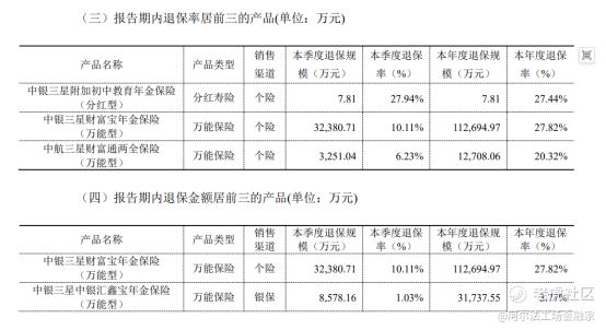 产品端的问题同样尖锐。2025第四季度退保率居前三的产品中,中银三星财富宝年金保险(万能型)退保规模高达11.27亿元,退保率27.82%;中航三星财富通两全保险(万能型)退保率20.32%。而中银三星中银汇鑫宝年金保险(万能型)退保规模也有3.17亿元。