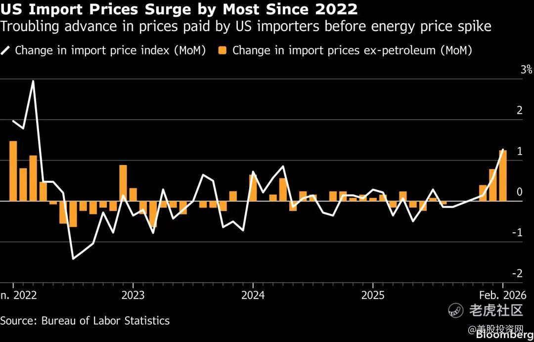 受能源与供应链成本攀升拖累,美国最新公布的进口价格创下了自2022年以来的最大涨幅。进口价格指数(Import Price Index)作为PPI和CPI的先行指标,其飙升为本已承压的宏观背景再添阴霾。